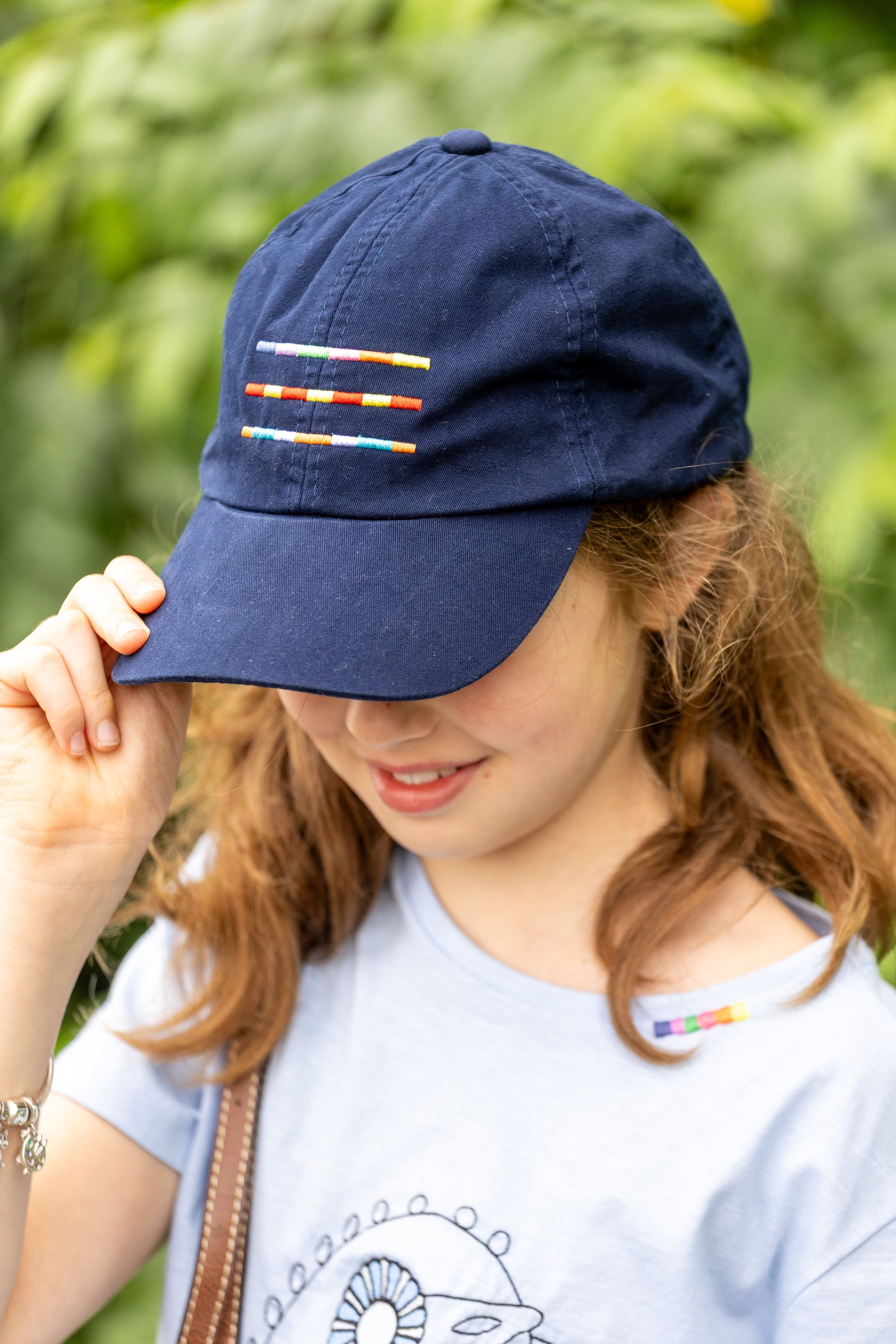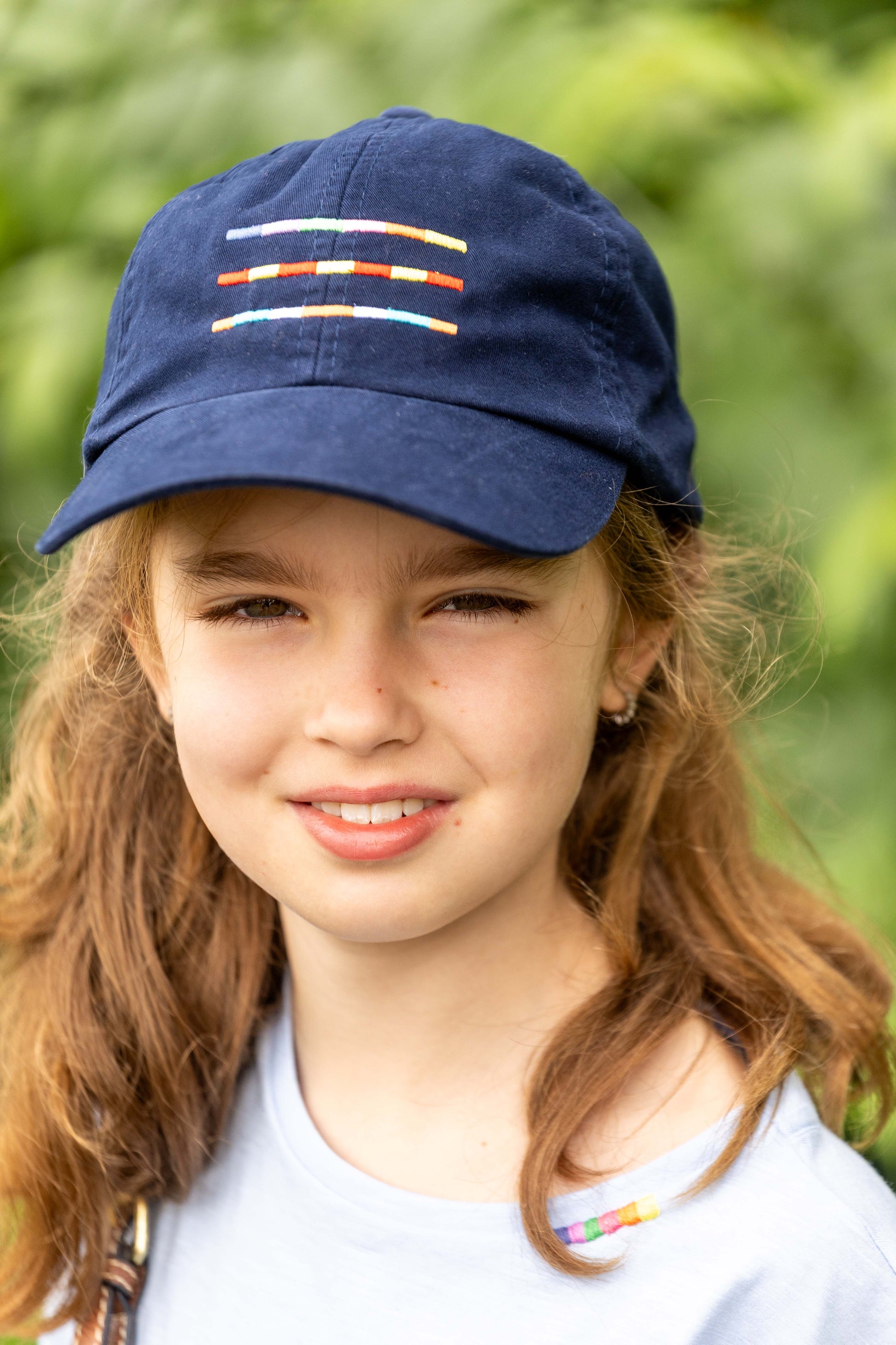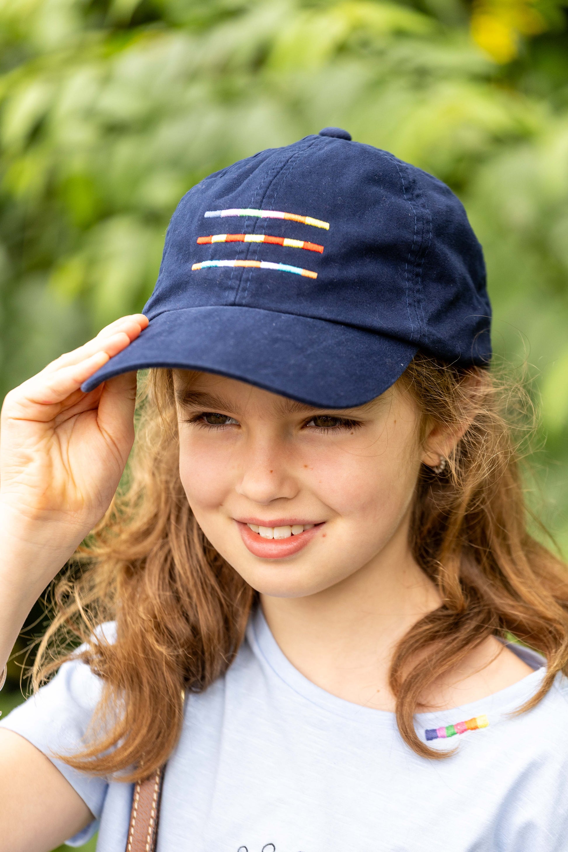 Detalhe que faz a diferença: boné azul marinho com barras bordadas e ajuste regulável. Estilo Just Horse para todas as ocasiões.