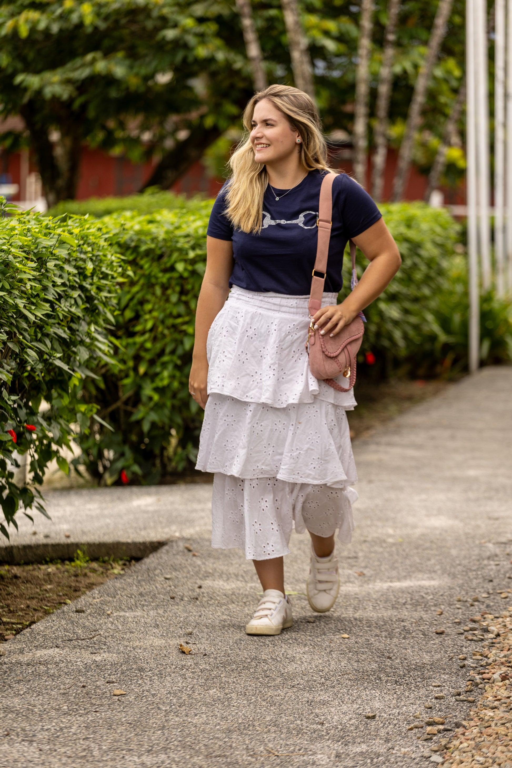 Feita em algodão peruano 100% com malha flamê, essa camiseta une conforto e sofisticação. Com modelagem tradicional, decote redondo e manga curta, o brilho fica por conta do bridão formado por strass aplicado — um toque elegante e equestre na medida certa.