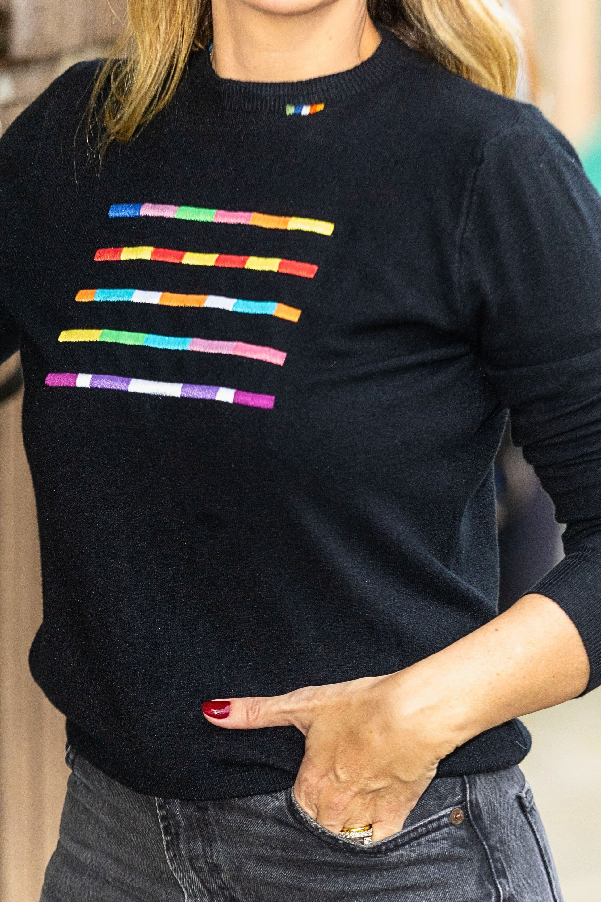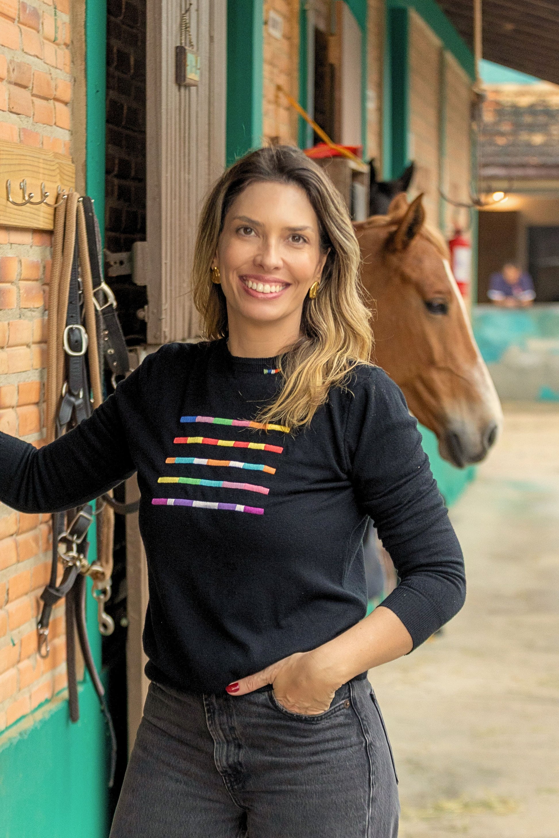 O colorido dos obstáculos em seu estilo! Este pullover apresenta um bordado vibrante com as cores de varas de hipismo. Uma peça que celebra a energia do esporte e adiciona um toque de cor e personalidade ao seu visual casual.