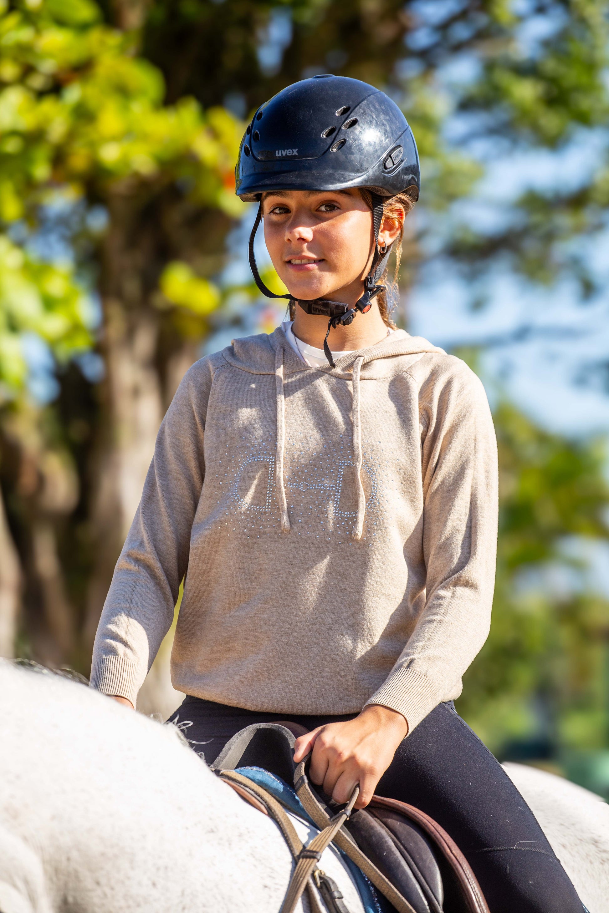 Estilo, conforto e brilho para o seu look! Este pullover com capuz traz um Bridão formado por delicados strass brilhantes.